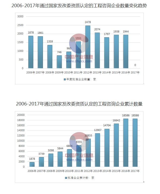 2006年開(kāi)始,國(guó)家發(fā)改委開(kāi)展工程咨詢單位資格認(rèn)定工作。2005年之前發(fā)改委原頒發(fā)的臨時(shí)級(jí)、預(yù)備級(jí)、丙級(jí)工程咨詢資格證書有效期截止至2005年12月31日,需要重新申請(qǐng)工程咨詢資格。持有正式甲、乙級(jí)工程咨詢資格證書的單位,2006年另行申請(qǐng)工程咨詢資格。因此此處統(tǒng)計(jì)口徑主要是2006年以來(lái)通過(guò)國(guó)家發(fā)...